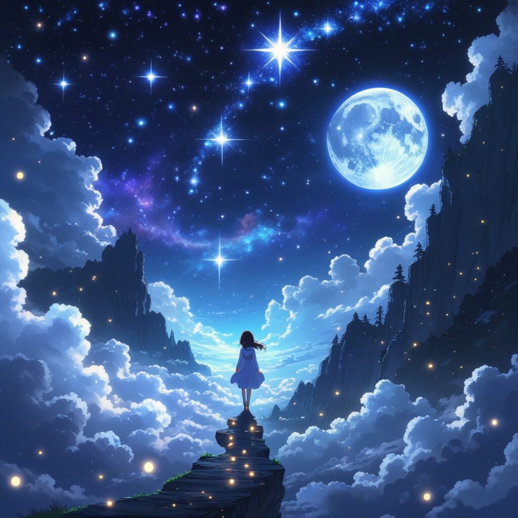 Elle avait sa propre lumière, unique et spéciale. Stella retourna à sa place dans le ciel. Elle se mit à briller de sa propre lumière, une lumière douce et chaleureuse qui apportait du réconfort à tous ceux qui regardaient le ciel nocturne. Depuis ce jour, Stella brille de sa propre lumière, et même si elle n’est pas la plus brillante, elle est l’étoile la plus aimée de tous. Et chaque nuit, on peut la voir, douce et brillante, veillant sur nous dans le ciel
